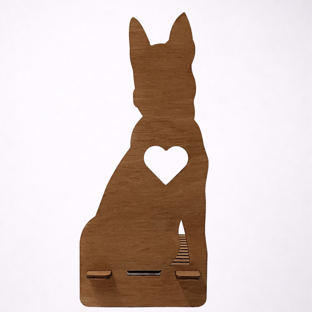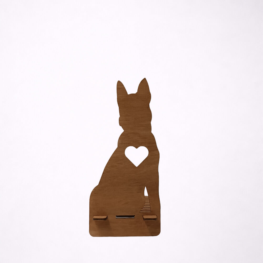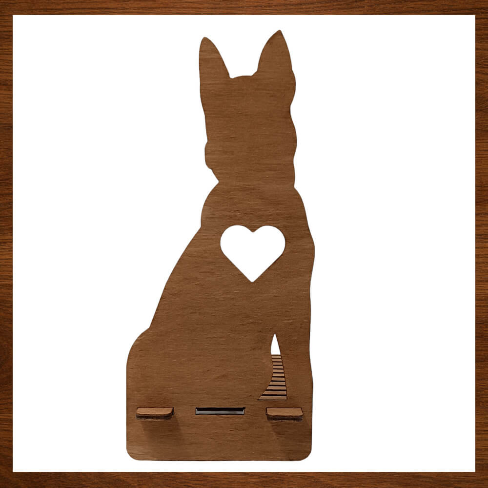 Ξύλινη βάση κινητού σκύλος με καρδιά