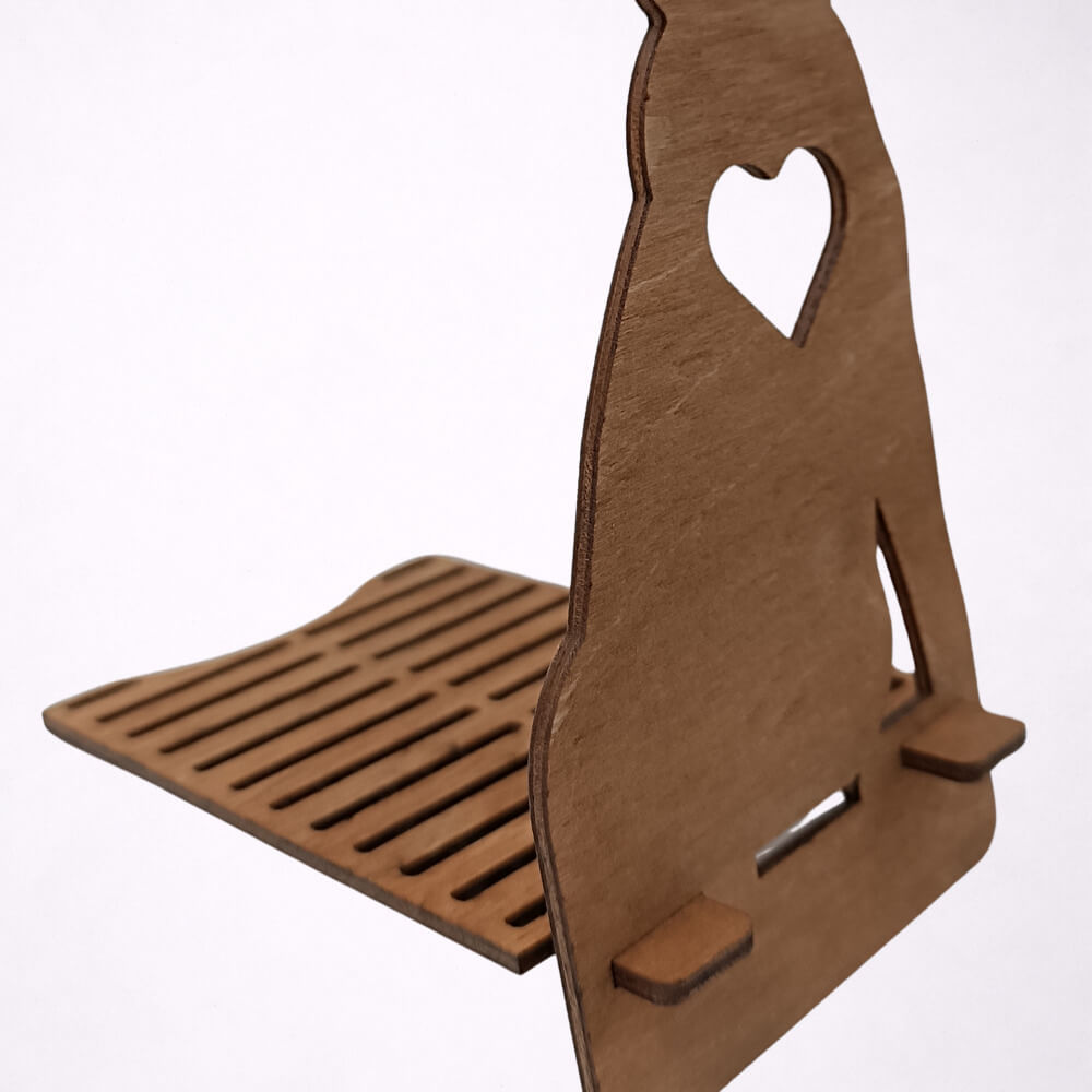 Η ξύλινη βάση κινητού σκύλος με καρδιά συνδυάζει πρακτική χρήση και χαριτωμένο design. Στηρίζει το κινητό με σταθερότητα και παράλληλα λειτουργεί ως όμορφο διακοσμητικό στοιχείο για γραφείο, κομοδίνο ή παιδικό δωμάτιο.