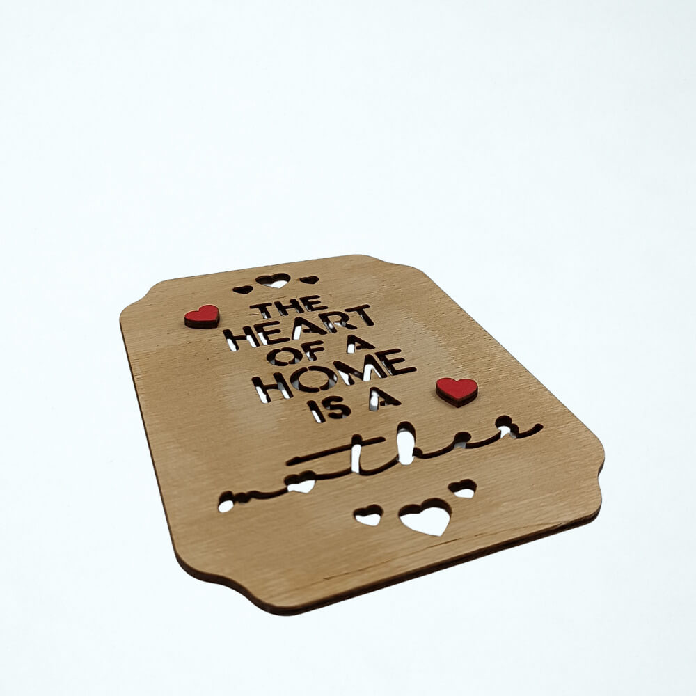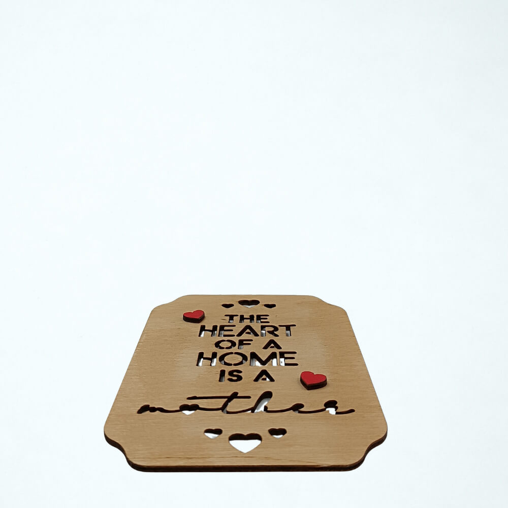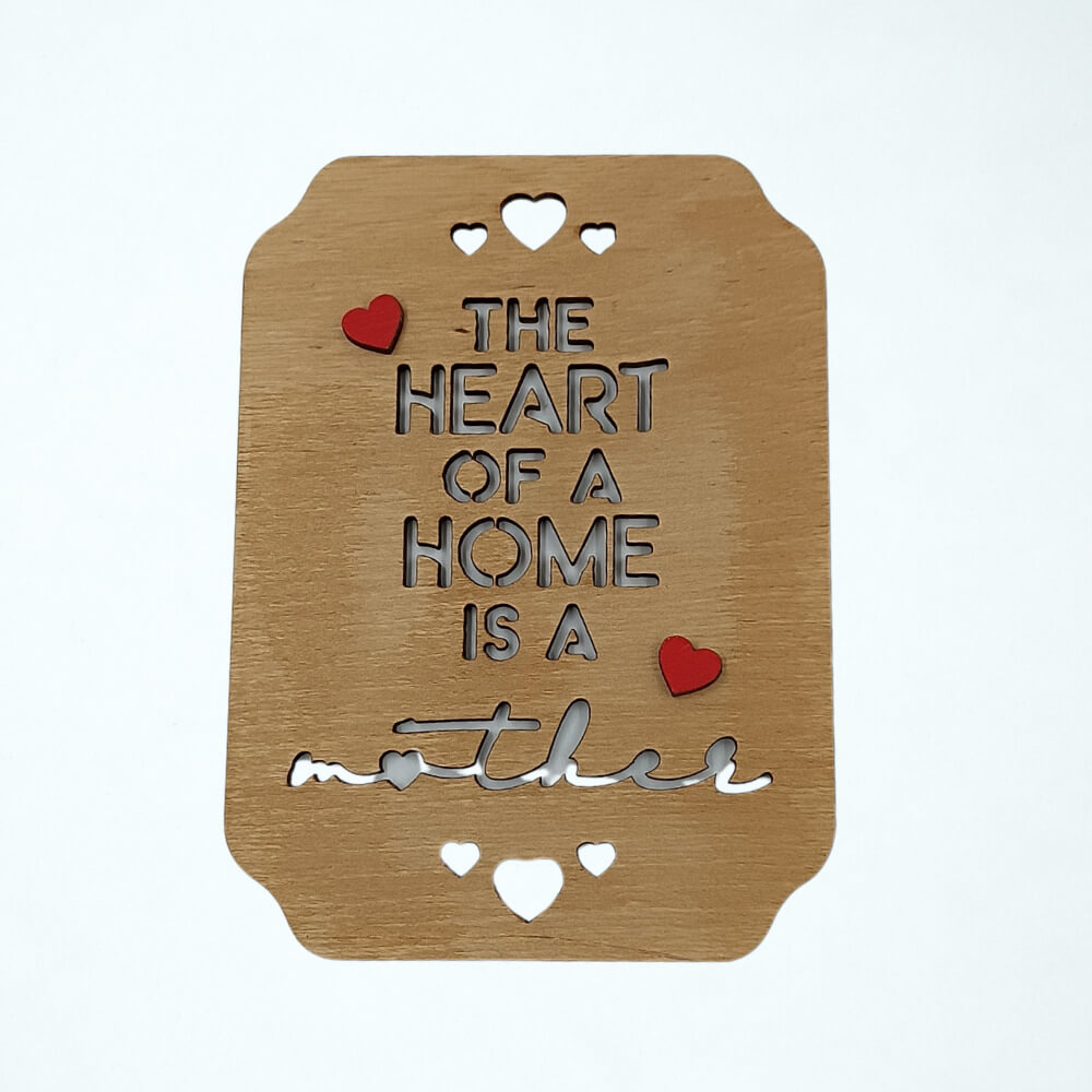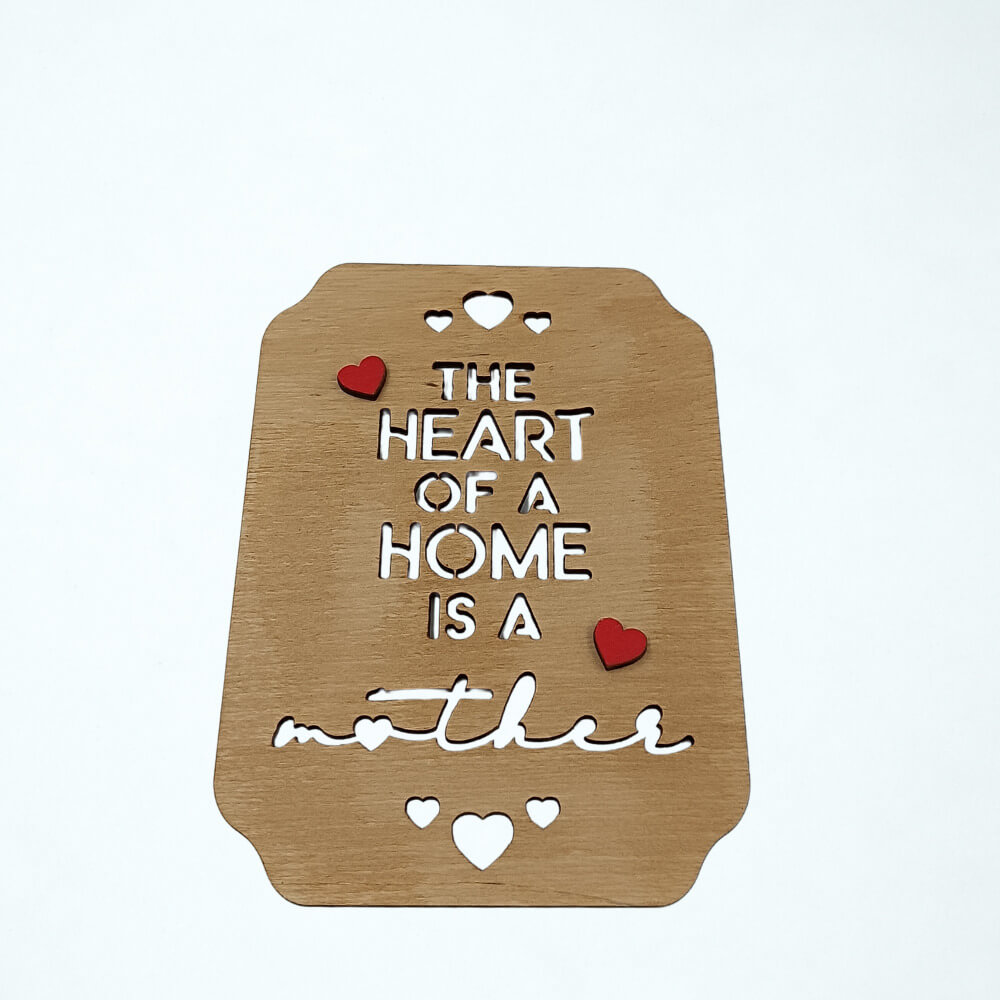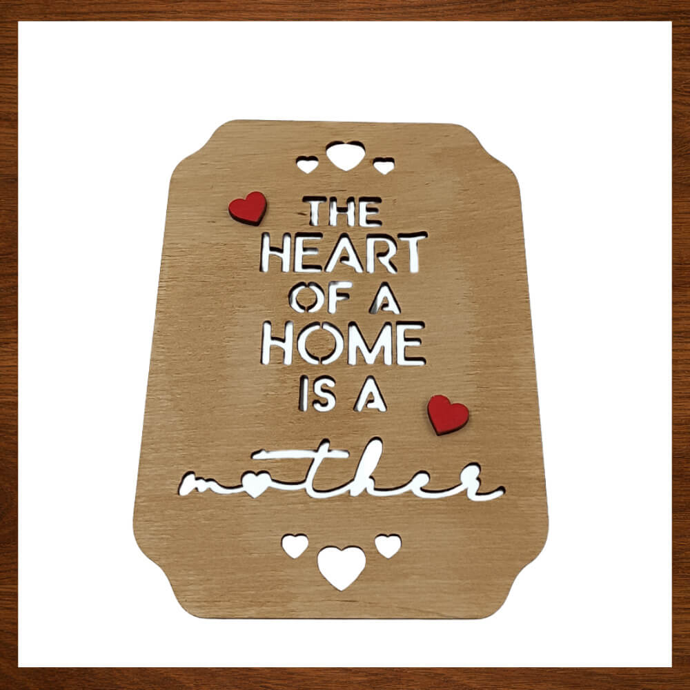 Ξύλινο Διακοσμητικό Στοιχείο Mother με Καρδιές και Χάραξη