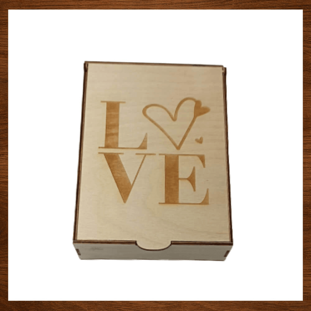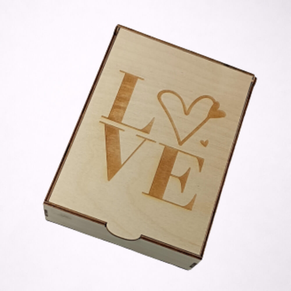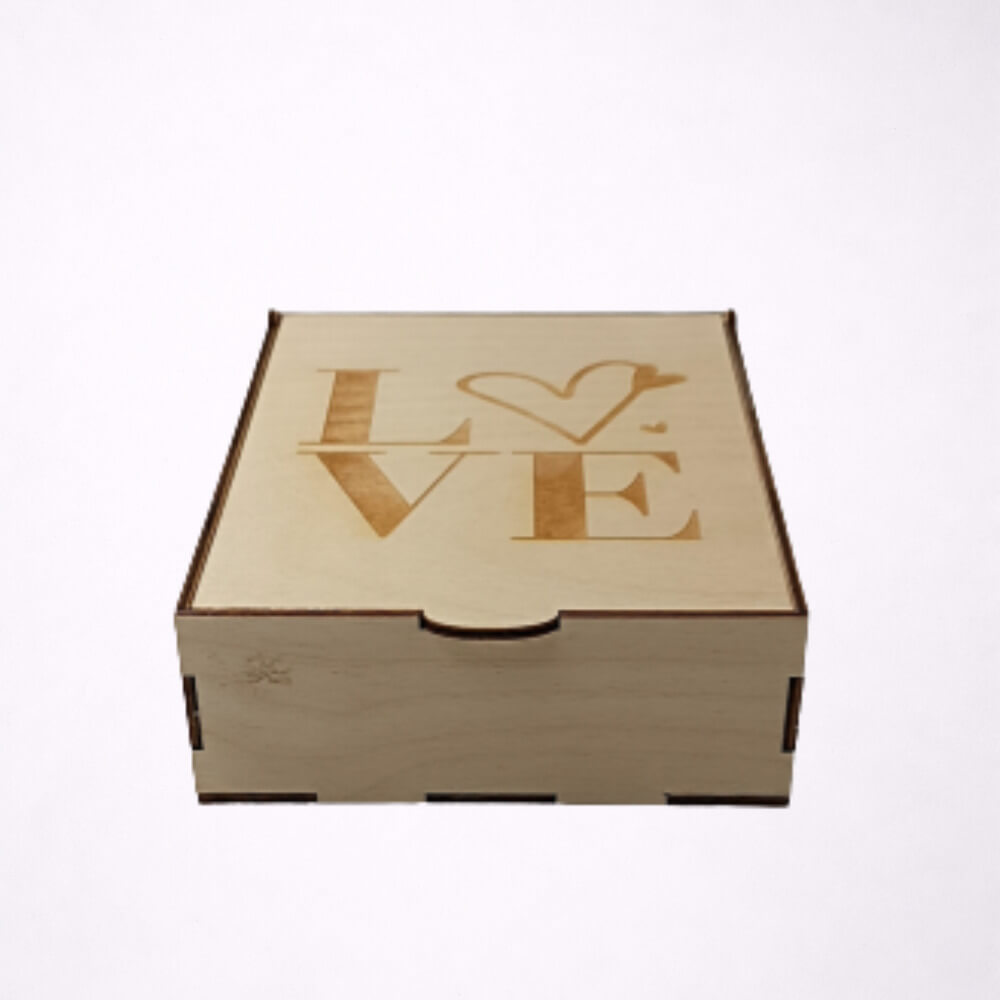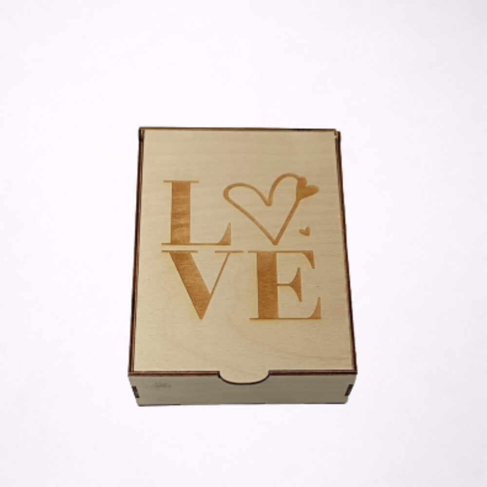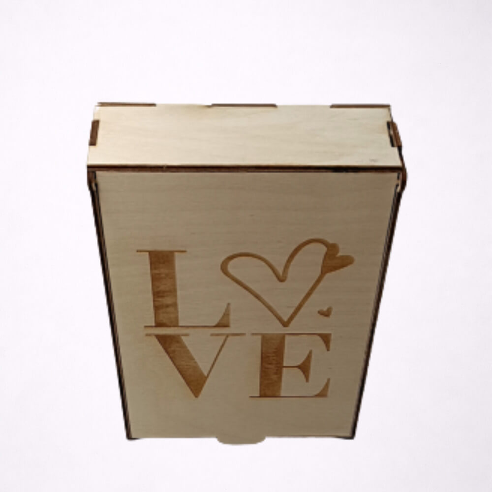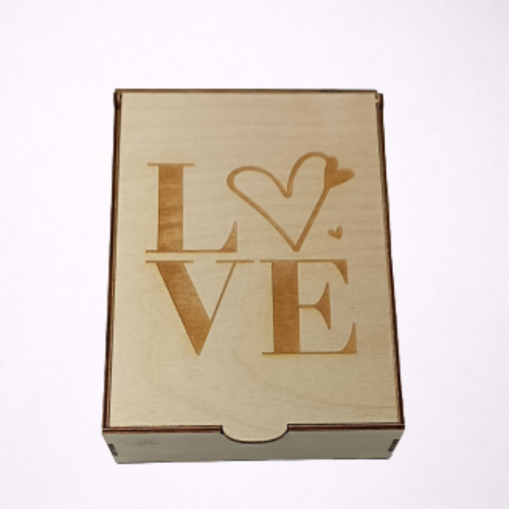 Ξύλινο κουτί δώρου Love με χάραξη, ιδανικό για ρομαντικά δώρα, Βαλεντίνο και επετείους. Προσφέρει όμορφη παρουσίαση και μπορεί να φιλοξενήσει σοκολατάκια, μικρά δώρα ή προσωπικές εκπλήξεις.